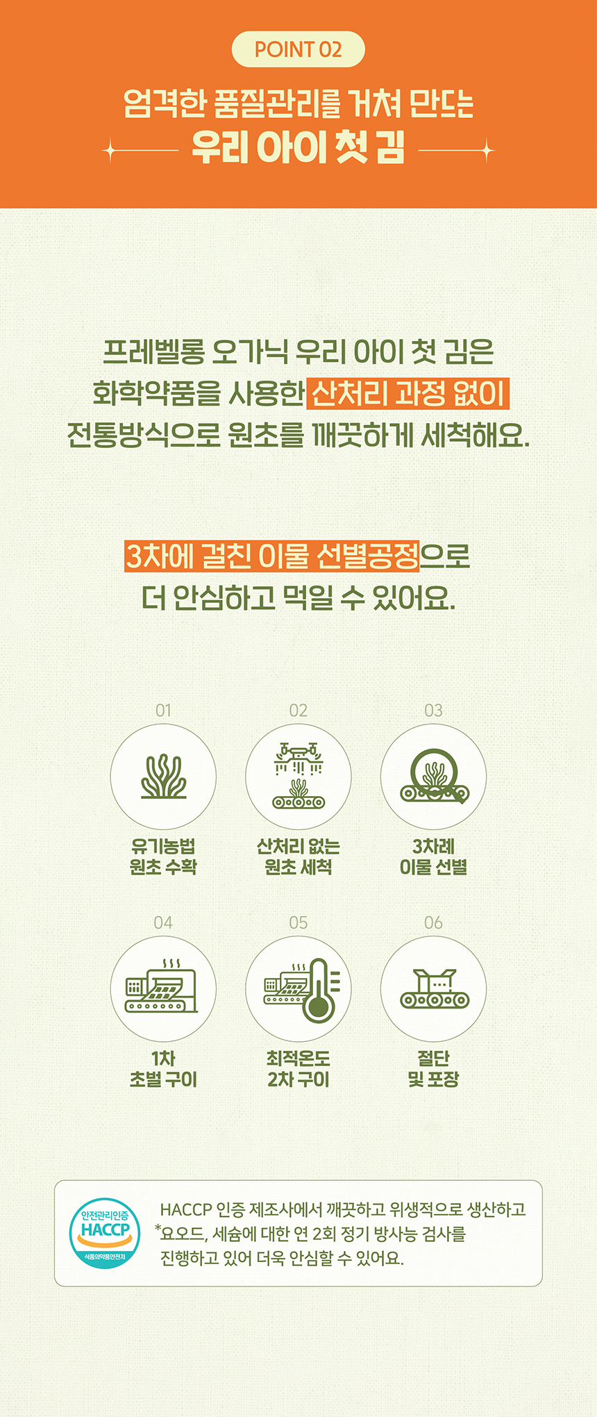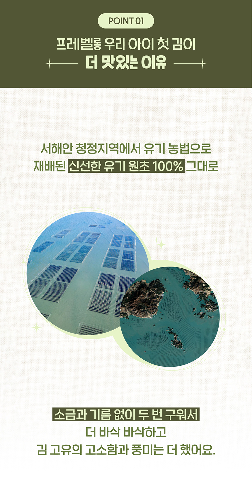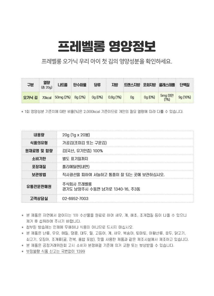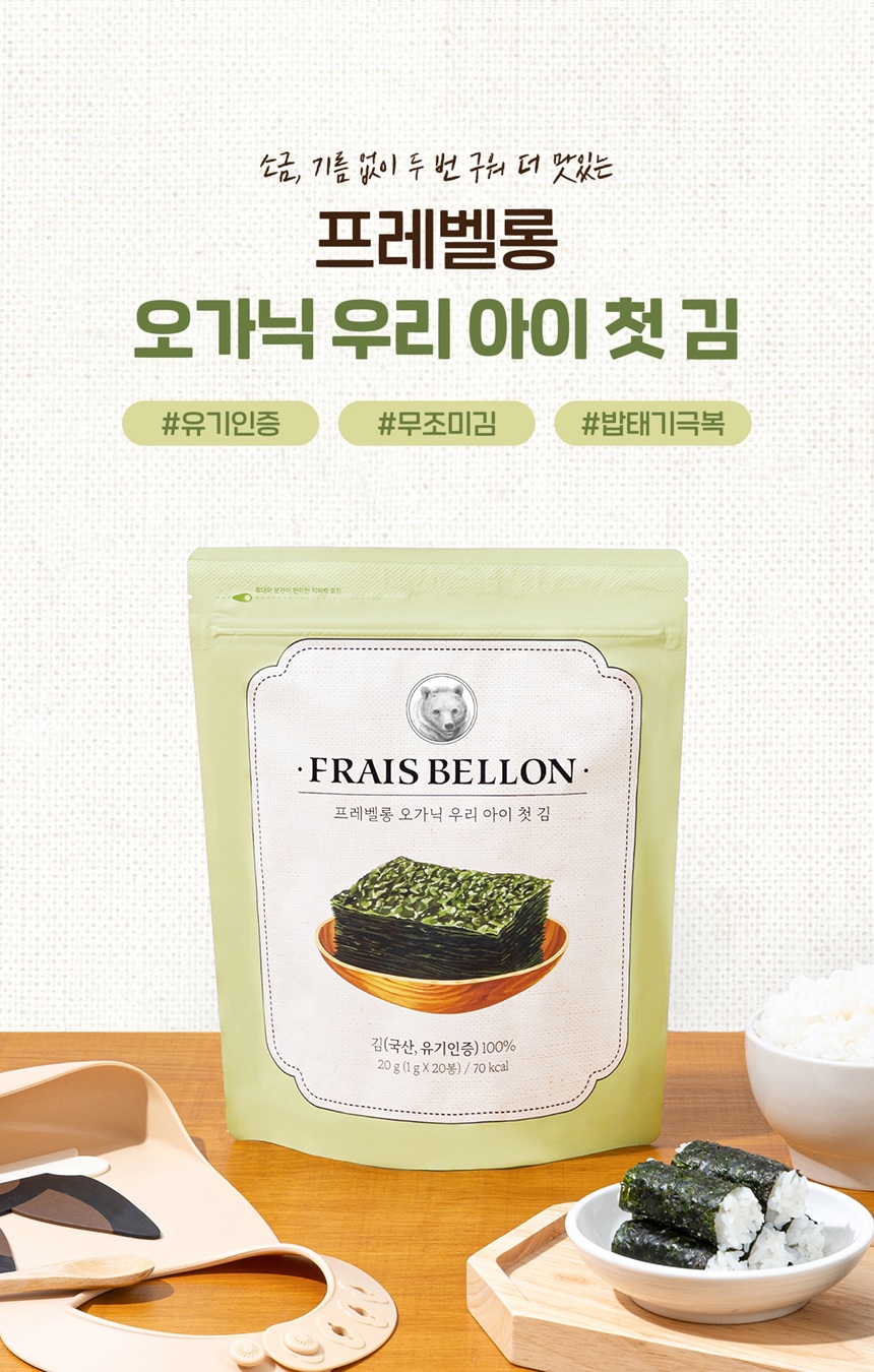 프레벨롱 오가닉 우리 아이 첫 김 20g 유기농 무조미 아기김